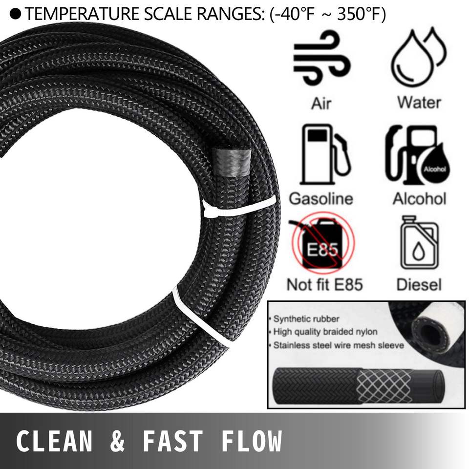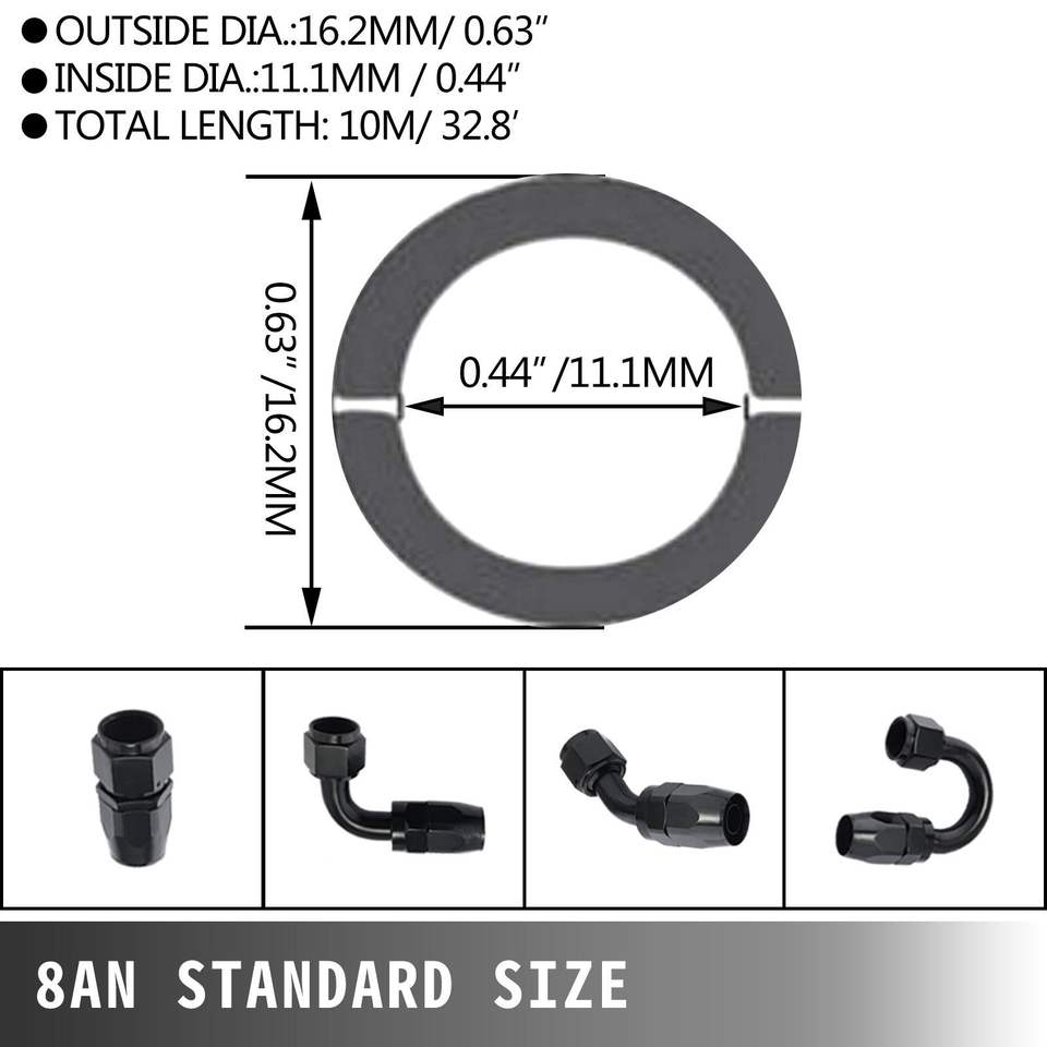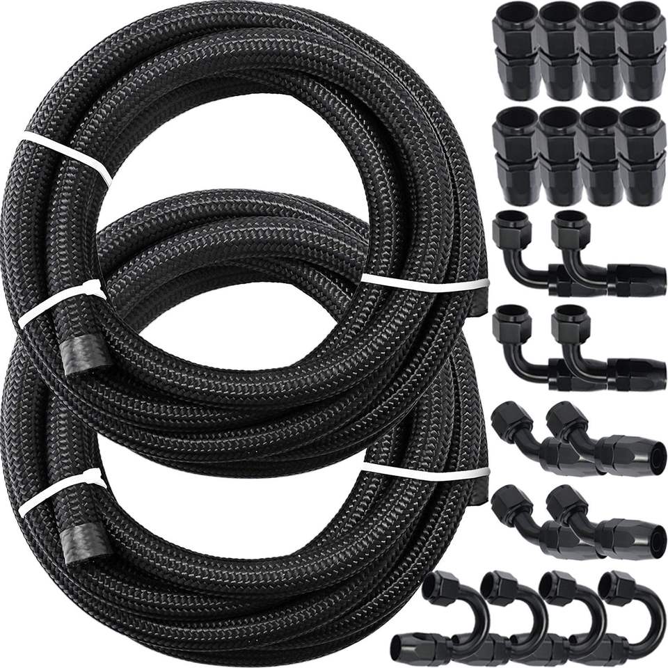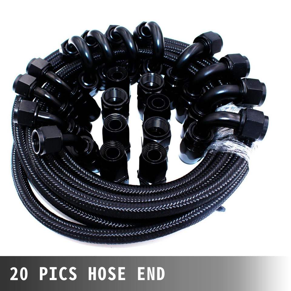 ชุดสายเชื่อมต่อเชื้อเพลิงอุตสาหกรรม 8AN พร้อมสายถักไนลอนสแตนเลสขนาด 32.8 มม. จำนวน 20 ชิ้น ข้อต่ออเนกประสงค์ 8AN ขนาด 11.11 มม./0.44 นิ้ว (ID)