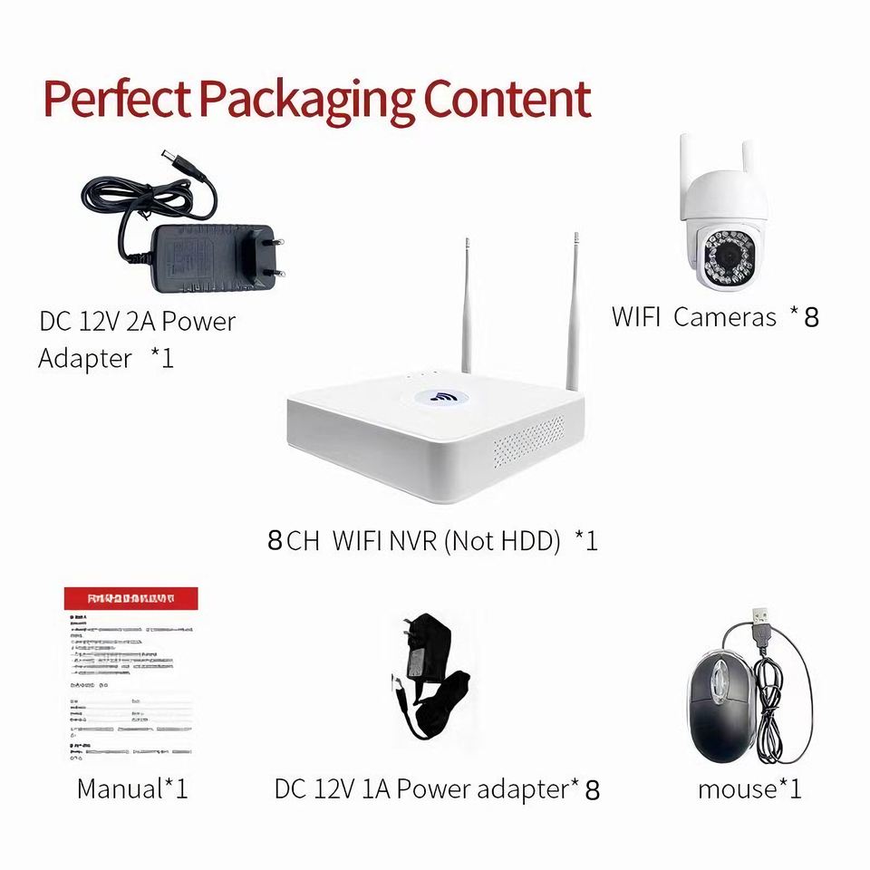 8CH 2MP สีเต็มรูปแบบมองกลางคืนกล้องไร้สาย WiFi ชุดกล้องวงจรปิดระบบเครือข่ายรักษาความปลอดภัย NVR สำหรับใช้ในบ้าน