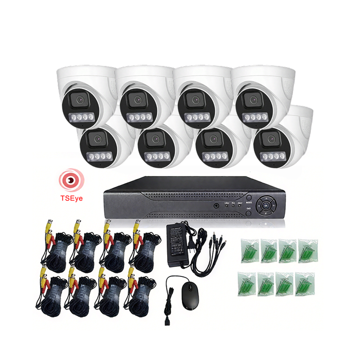 8CH ระบบกล้อง AHD เซ็นเซอร์ tseye CMOS สีเต็มรูปแบบมองเห็นกลางคืนกล้องรักษาความปลอดภัยแบบโดมอนาล็อก H.265 5MP ชุด XVR สำหรับในร่ม