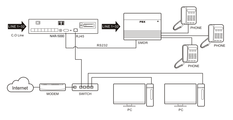 SMDR, CDR, EXT No.ฟังก์ชัน PBX