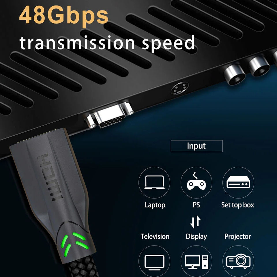 สาย2.1 8K HDMI 48Gbps ความเร็วสูงพิเศษ4K120Hz 8K60Hz 10K HDR ไนลอนถัก HDMI สำหรับ PS5 Xbox Apple TV
