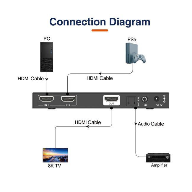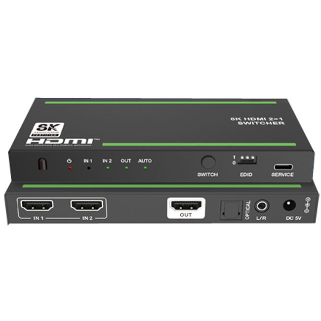 8K HDMI 2x1 Switcher Advanced EDID Management and Audio De-embedding Function for Big Screen
