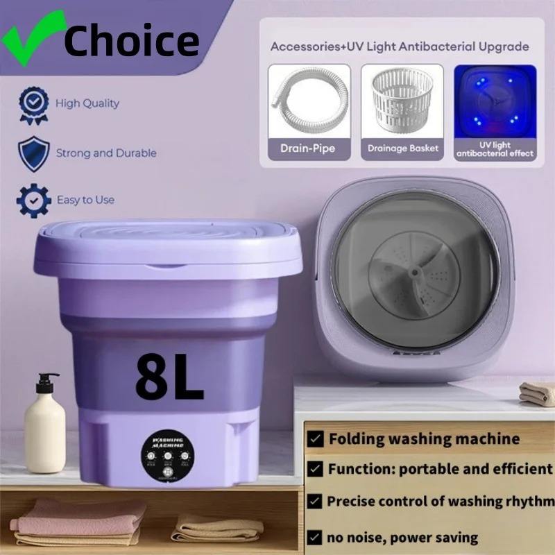เครื่องซักผ้าแบบพับได้สำหรับเดินทางขนาดเล็กแบบพกพาสำหรับซักเสื้อผ้าถุงเท้าชุดชั้นใน8L