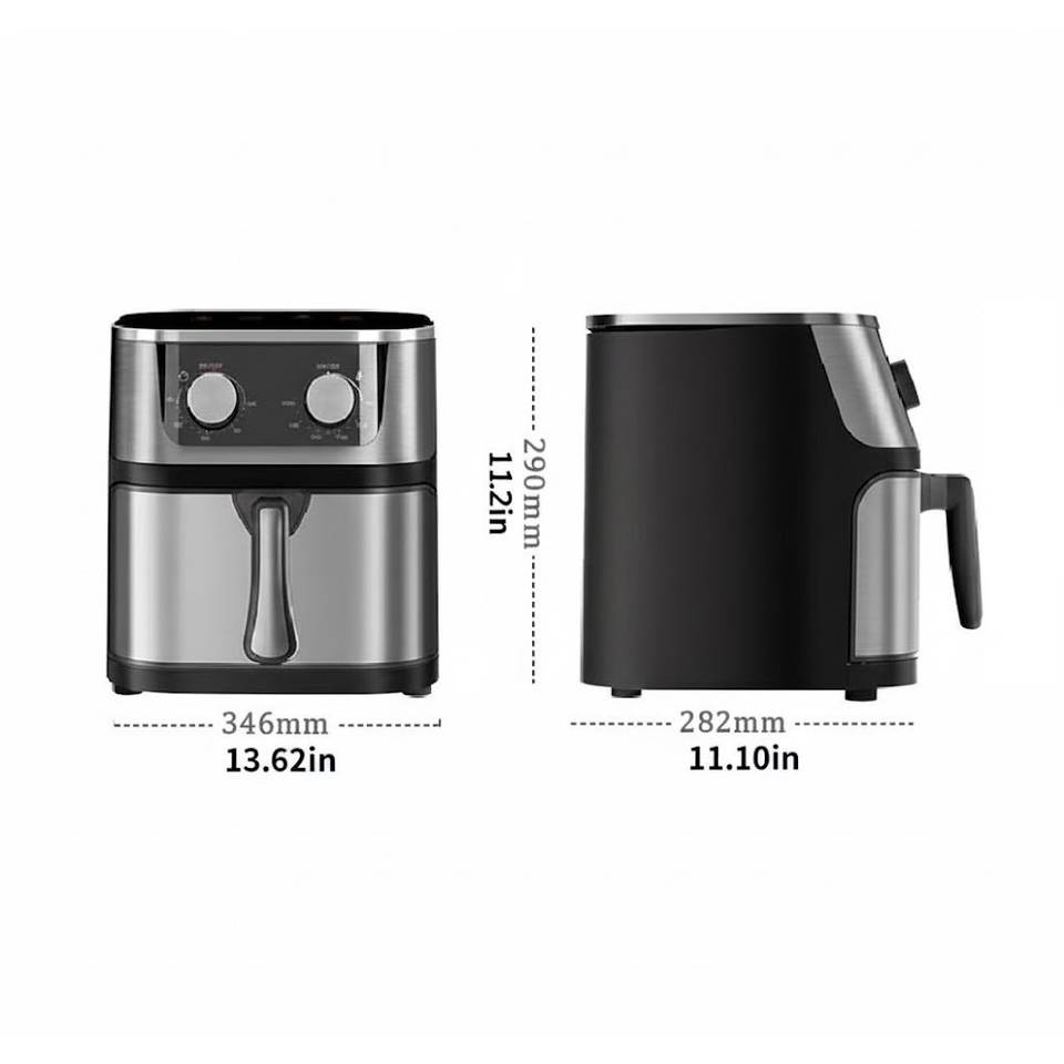 หม้อทอดไร้น้ำมันไฟฟ้าขนาด 8 ลิตร ทรงสี่เหลี่ยม ความจุใหญ่ ผลิตจากสแตนเลส ดีไซน์คลาสสิกทันสมัย แบบตะกร้าเดี่ยว เพื่อสุขภาพ เหมาะสำหรับใช้ในบ้านและในรถยนต์