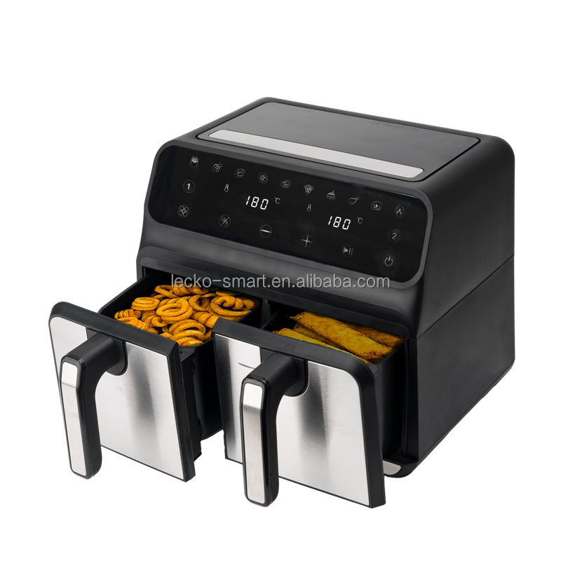 หม้อทอดไร้น้ำมันไฟฟ้าสแตนเลสแบบสองโซน, หม้อทอดไร้น้ำมัน8L หน้าจอดิจิตอลอัจฉริยะเครื่องใช้ในครัวสองประตูสำหรับใช้ในครัวเรือน