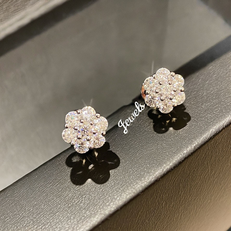 ต่างหูเงินแท้ 925 ชุบโรเดียม แบบสั่งทำ ขายส่ง หลายขนาด ประดับเพชรโมอิสซาไนต์ทรงคลัสเตอร์ ดีไซน์ดอกไม้สุดน่ารัก หรูหรา เหมาะสำหรับงานปาร์ตี้