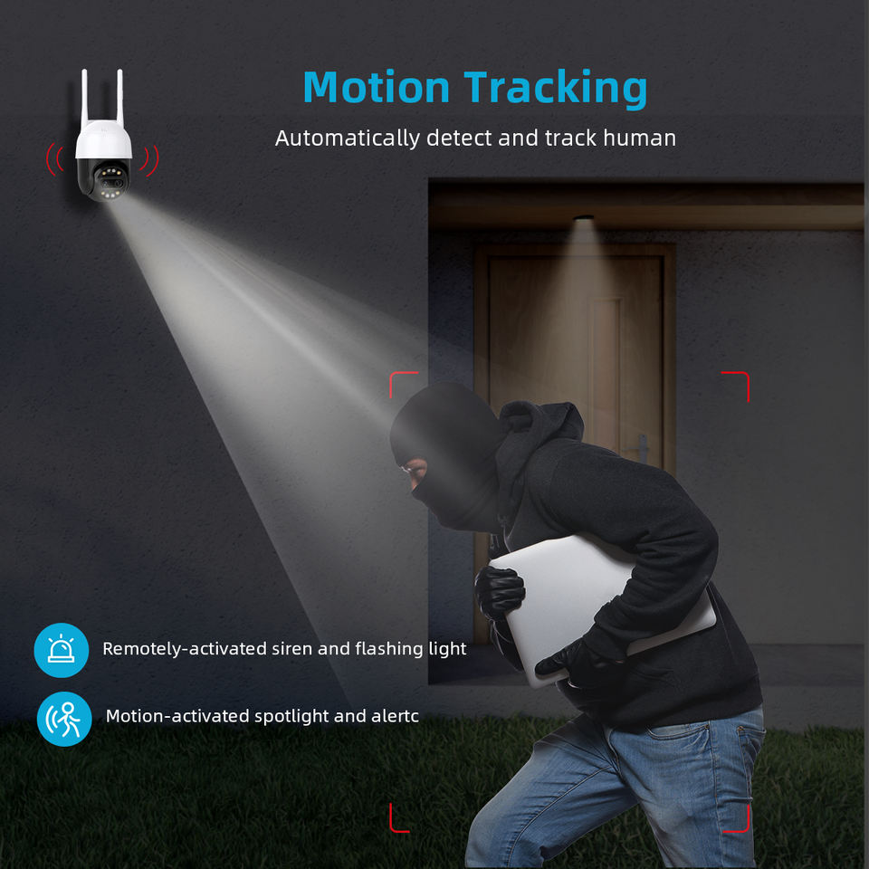 ในตอนกลางคืน, 2-Way Audio, การตรวจจับการเคลื่อนไหว, มนุษย์การติดตามการเคลื่อนไหว, PAN-TILTคุณสมบัติพิเศษ