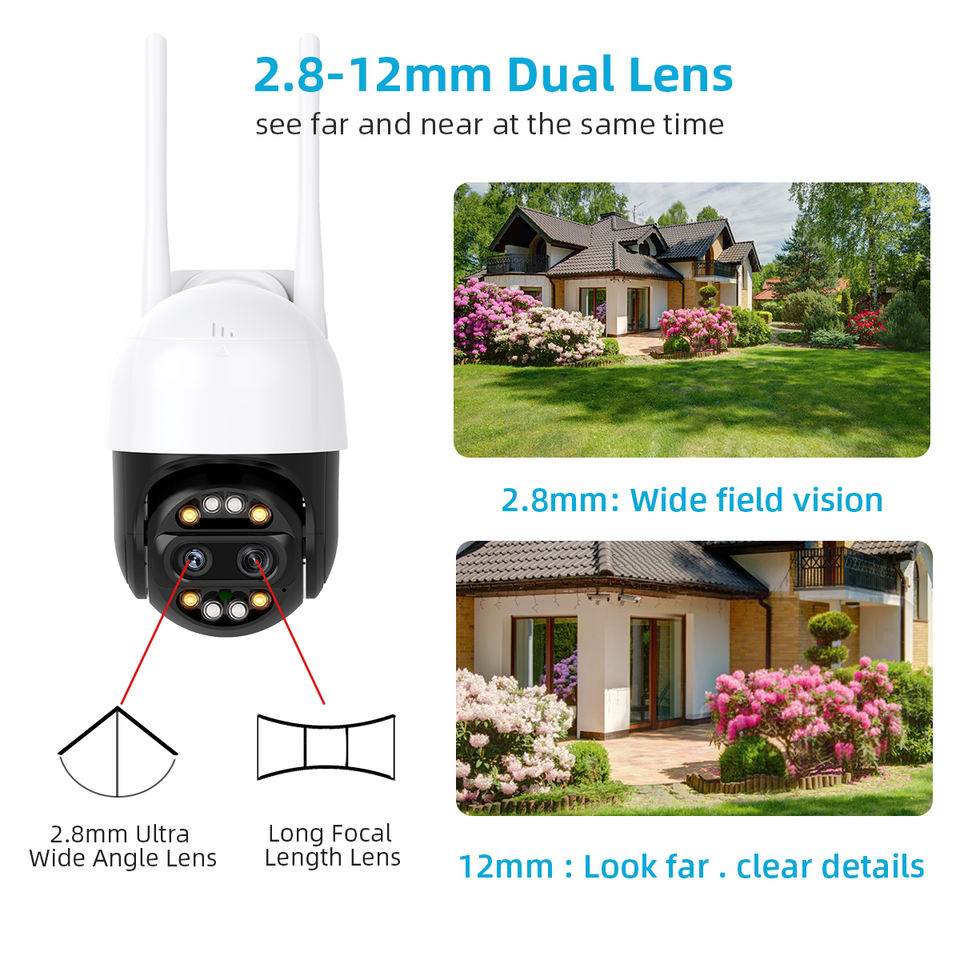 8MP 4K PTZ กล้อง IP 8x ซูมเลนส์คู่ตรวจจับมนุษย์กล้องวงจรปิดกล้องวงจรปิดกลางแจ้งอินเตอร์เน็ตไร้สายกล้องเฝ้าระวังวิดีโอไอซีซี อเล็กซา
