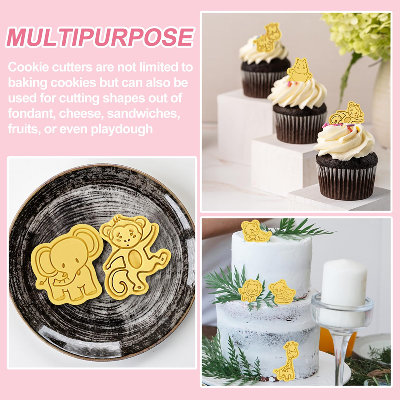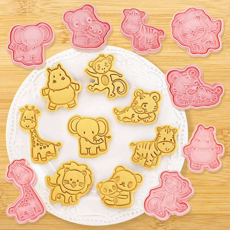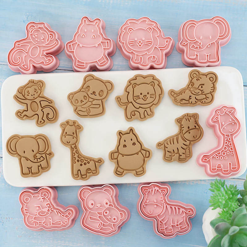 8ชิ้นที่ตัดคุกกี้3D พลาสติกสัตว์ไดโนเสาร์แมวสุนัขปลาการ์ตูนบิสกิตแม่พิมพ์