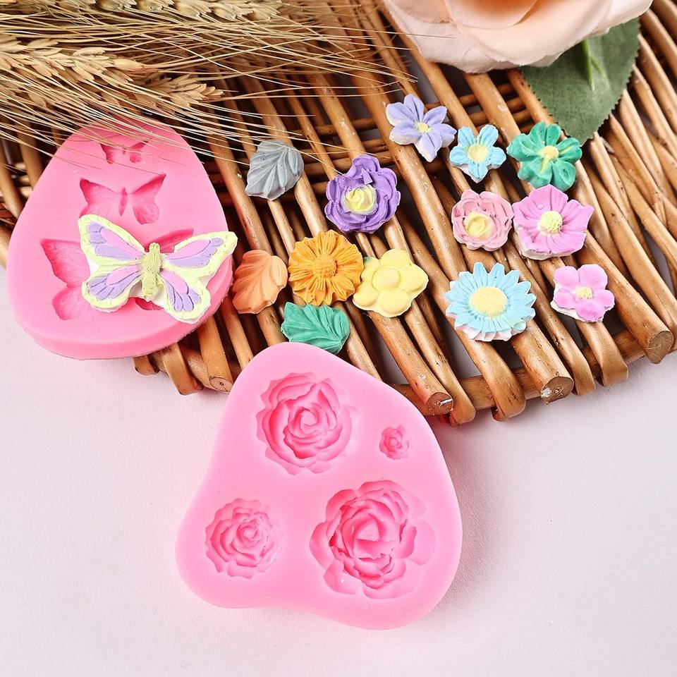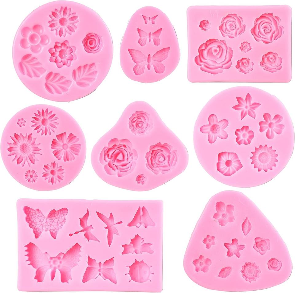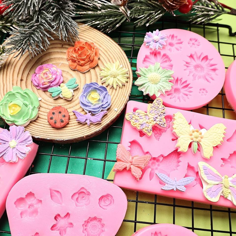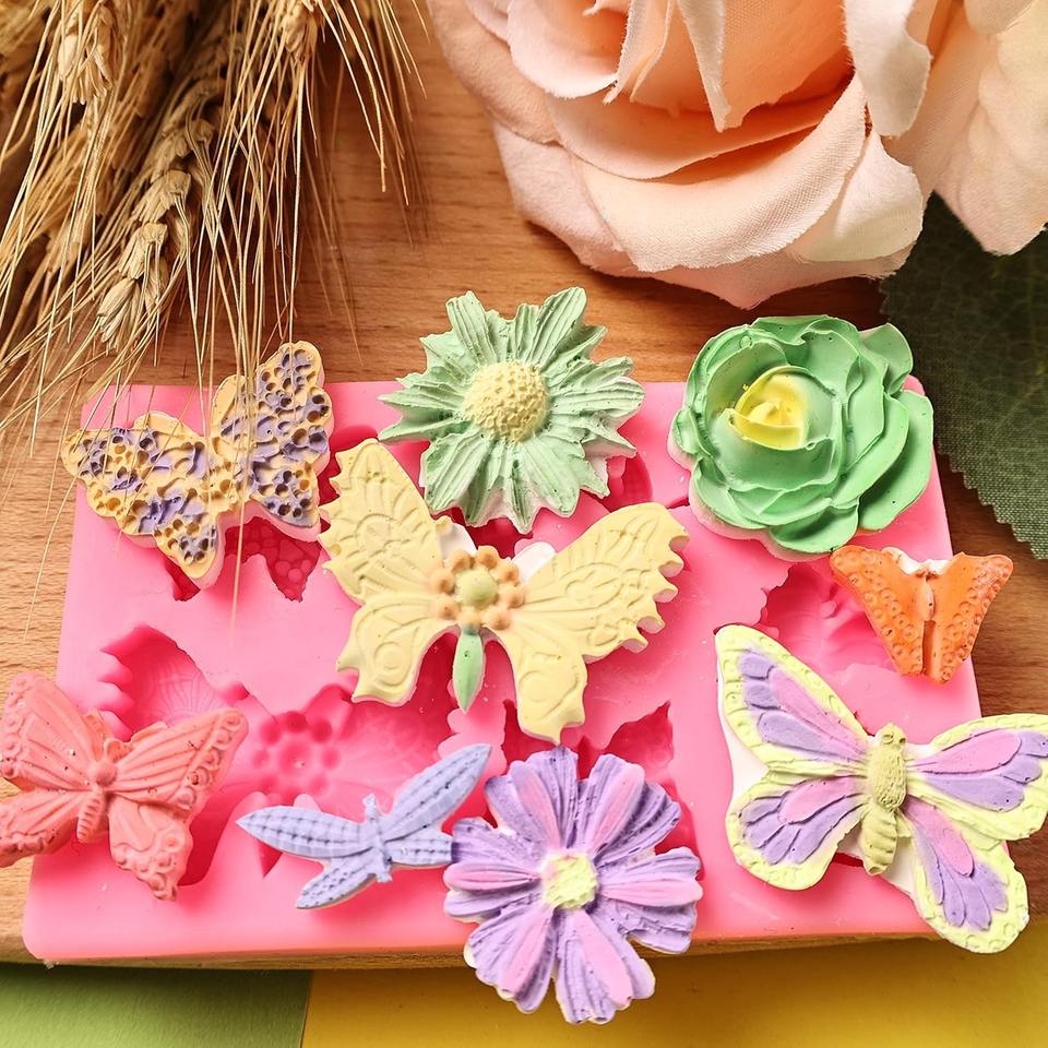 แม่พิมพ์ซิลิโคนรูปดอกไม้ผีเสื้อ 8 ชิ้น สำหรับทำช็อกโกแลต ฟองดองท์ ดินโพลิเมอร์ สบู่ งานฝีมือ ตกแต่งเค้ก