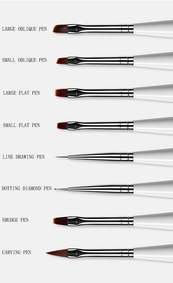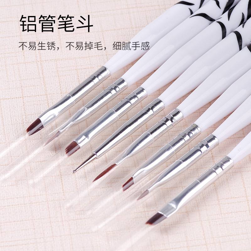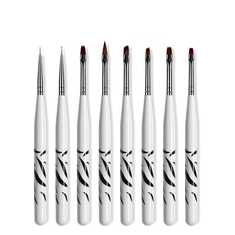 แปรงทาเล็บลายม้าลาย8ชิ้น/เซ็ต,อุปกรณ์ปากกาแปรงวาดเส้นเจลยูวีทำเล็บผมไนลอนอะคริลิก