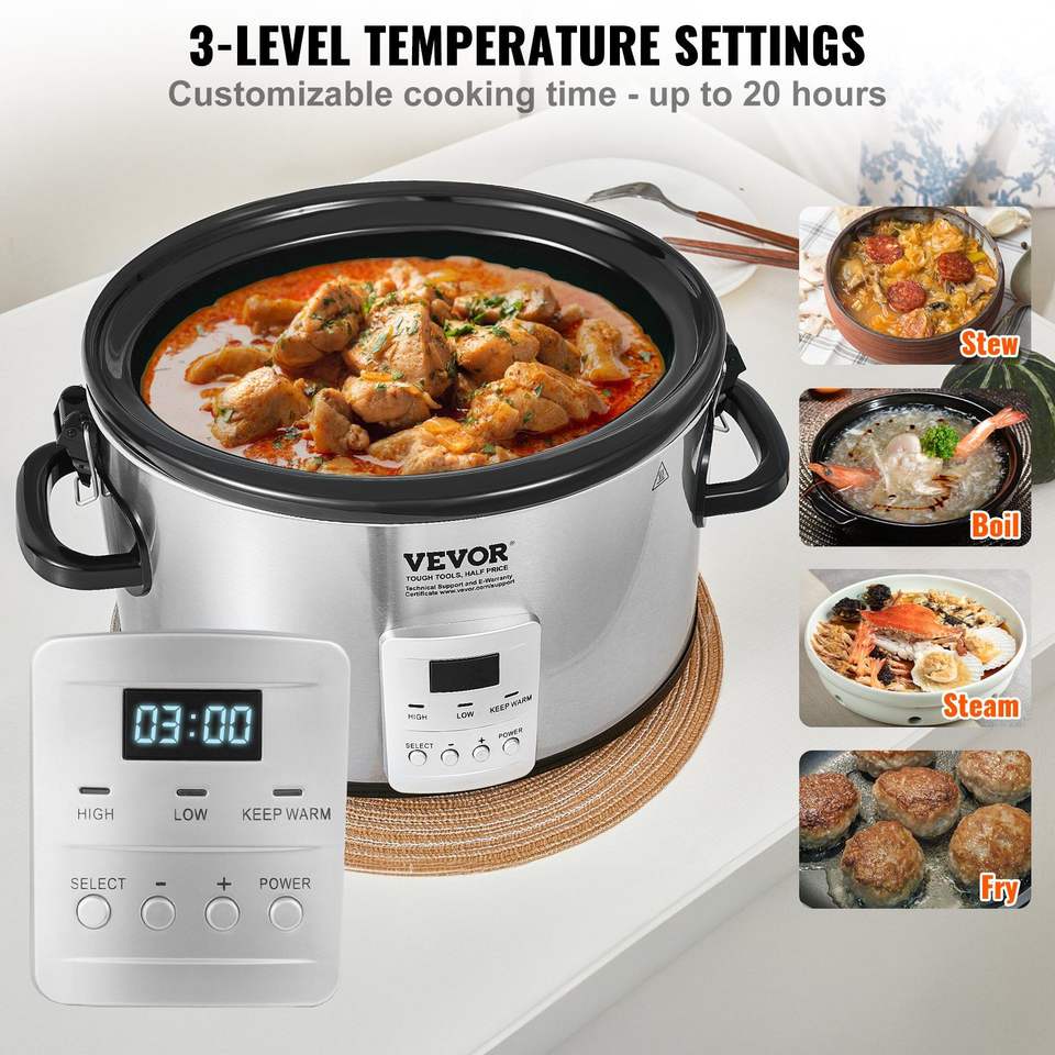 หม้อตุ๋นไฟฟ้า 8QT 320W ปรับความร้อนได้ 3 ระดับ ตั้งเวลาได้สูงสุด 20 ชั่วโมง พร้อมระบบล็อค สำหรับการตุ๋นแบบช้าและการทำซูวีด์