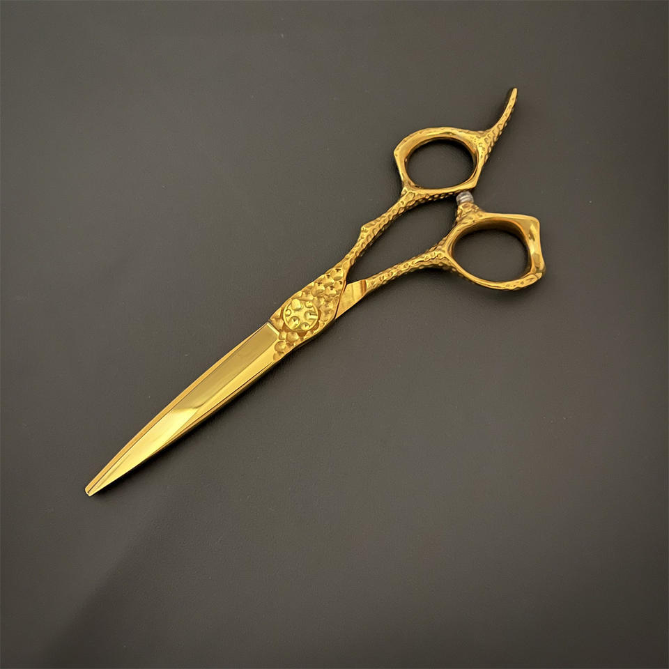 กรรไกรตัดผมสีทอง 8S ขนาด 6 นิ้ว สำหรับมืออาชีพ ใช้ในร้านเสริมสวย ใบมีดสแตนเลสสำหรับคนถนัดขวา แบบมาตรฐาน