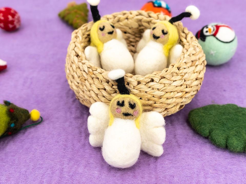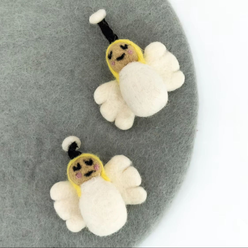 เครื่องประดับผ้าสักหลาดสีขาวรูปนางฟ้ารัศมี8ซม. ผ้าสักหลาดแบบเนปาเลสขนสัตว์เป็นมิตรกับสิ่งแวดล้อมของตกแต่งการประสูติคริสต์มาสของตกแต่งงานปาร์ตี้ล้วนๆ