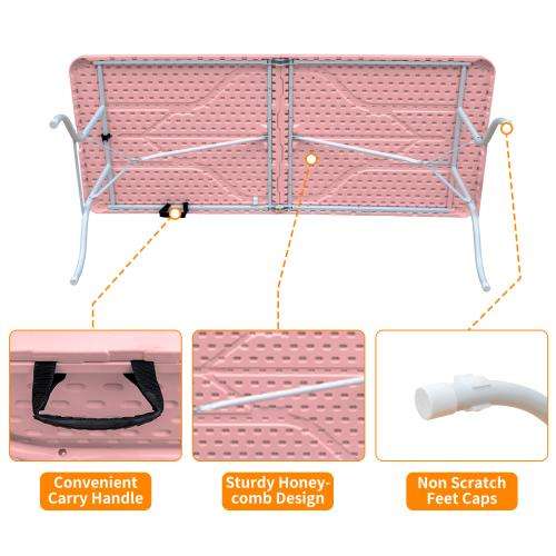 โต๊ะพับพลาสติกสีชมพูแบบพกพา8FT รับน้ำหนักได้มากสำหรับตั้งแคมป์ปาร์ตี้