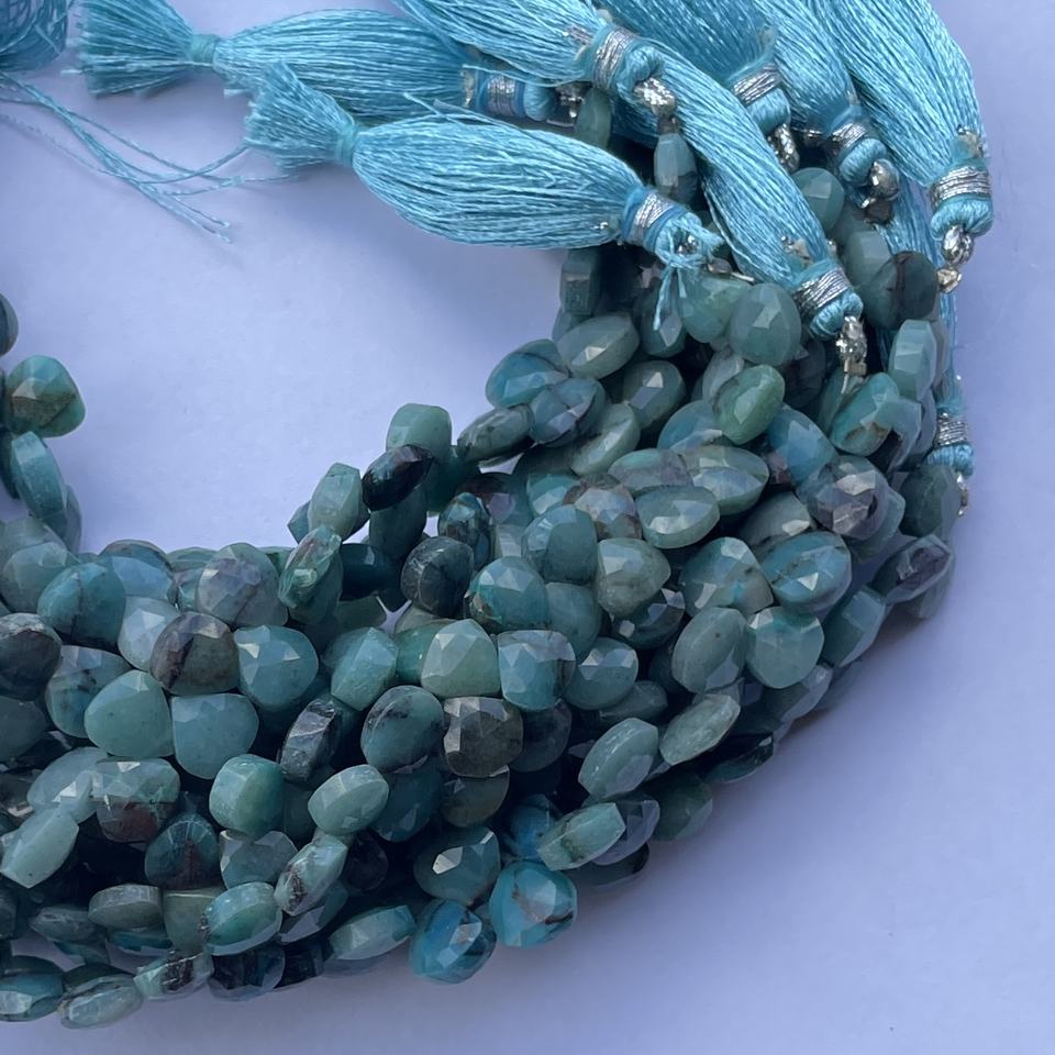 Product Name:Natural Chrysocolla Stone Heart Shape Faceted Briolette Drops Beads