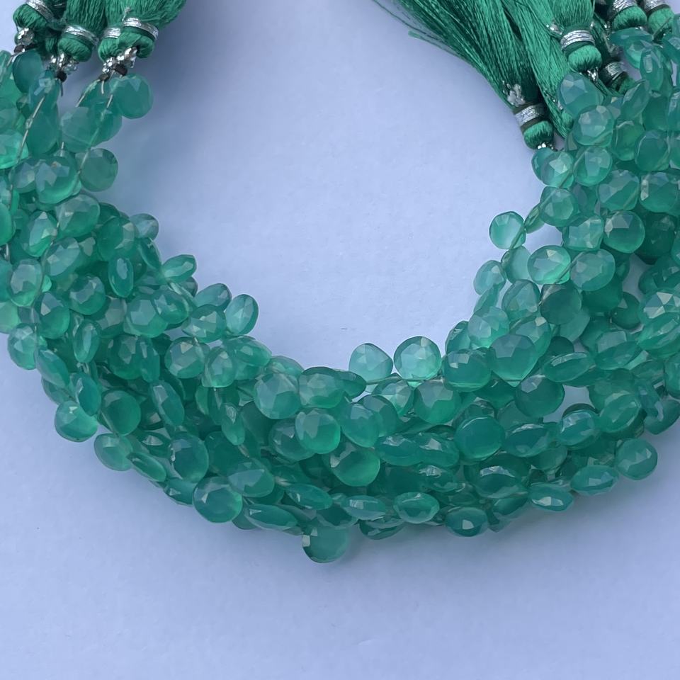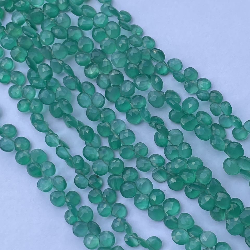 หินโอนิกซ์สีเขียวธรรมชาติรูปหัวใจทรงหยดน้ำ briolette ขนาด AAA