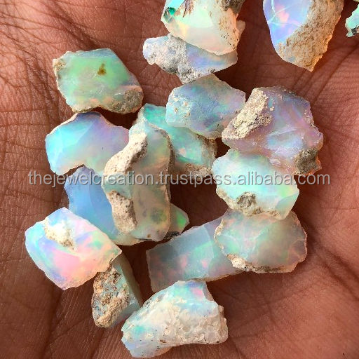 พลอยโอปอลขนาด8มม. 10มม. สีขาวเอทิโอเปียเวลโอโอปอลจากแร่ไฟหยาบคุณภาพจากร้านค้าส่งออนไลน์