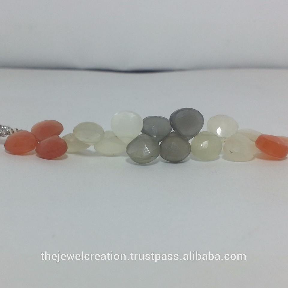 Product Name:Natural Multi Moonstone Faceted Heart Briolette Gemstone Beads Strand