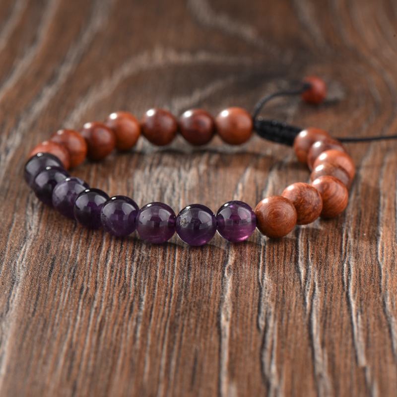สร้อยข้อมือลูกปัดอะเมทิสต์8มม. สำหรับผู้หญิงสร้อยข้อมือลูกปัดไม้แบบมีสไตล์
