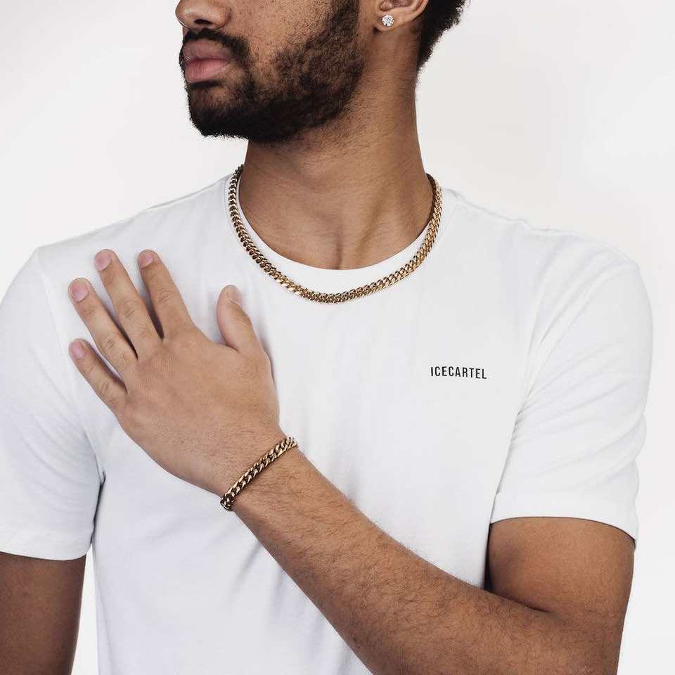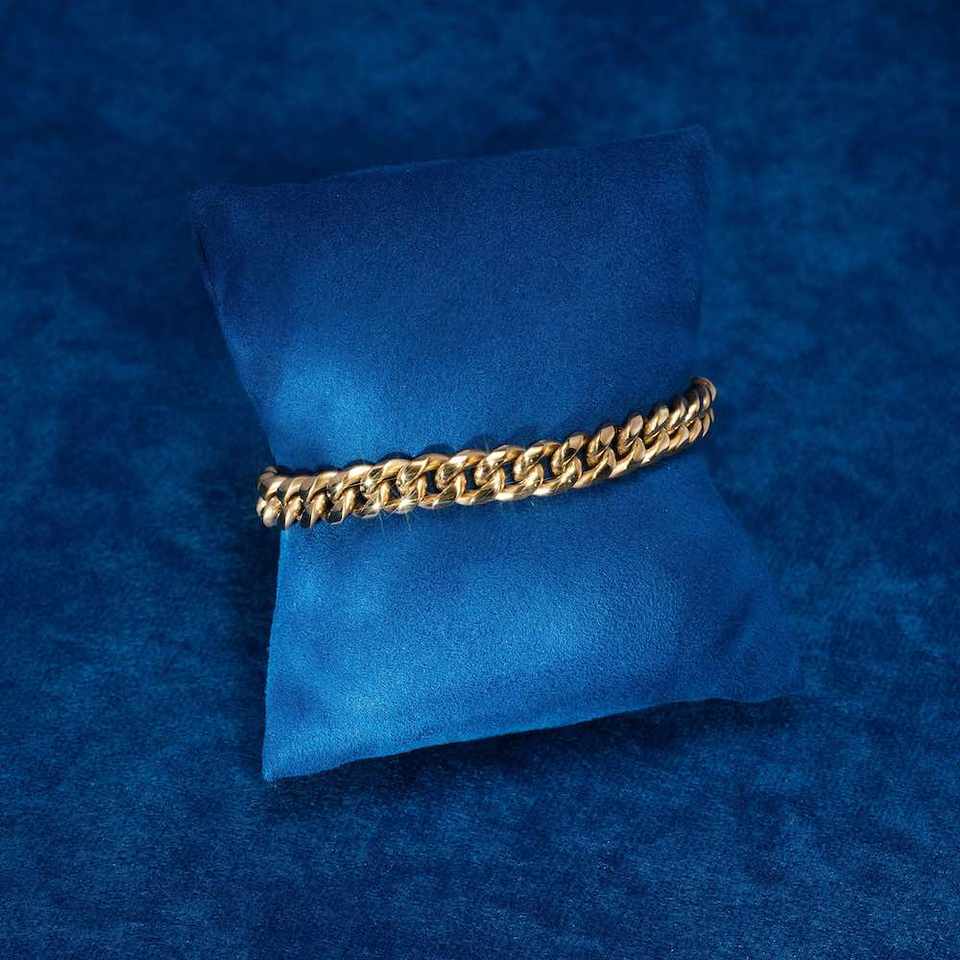 สร้อยข้อมือแบบ Cuban Link ขนาด 8 มม. ทำจากทองคำชมพู 14K ประดับเพชร มุก มอยส์ซาไนต์ เซอร์คอน และลวดลายสไตล์ศาสนา เหมาะสำหรับเป็นของขวัญหรือใส่ในงานปาร์ตี้