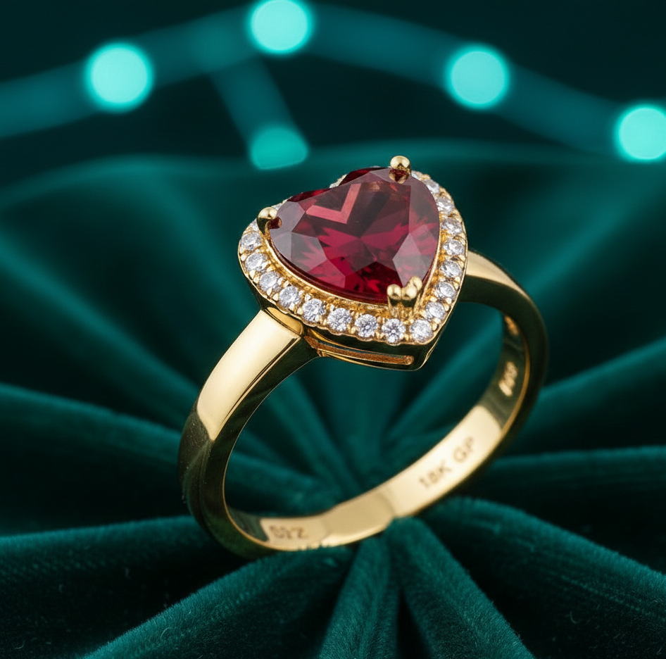 แหวนรูปหัวใจขนาด 8 มม. ประดับพลอยไฮโดรสีแดง พร้อมเพชร CZ เงินแท้ 925 ชุบทอง 18K แหวนค็อกเทลดีไซน์เนอร์ ไซส์ US 6