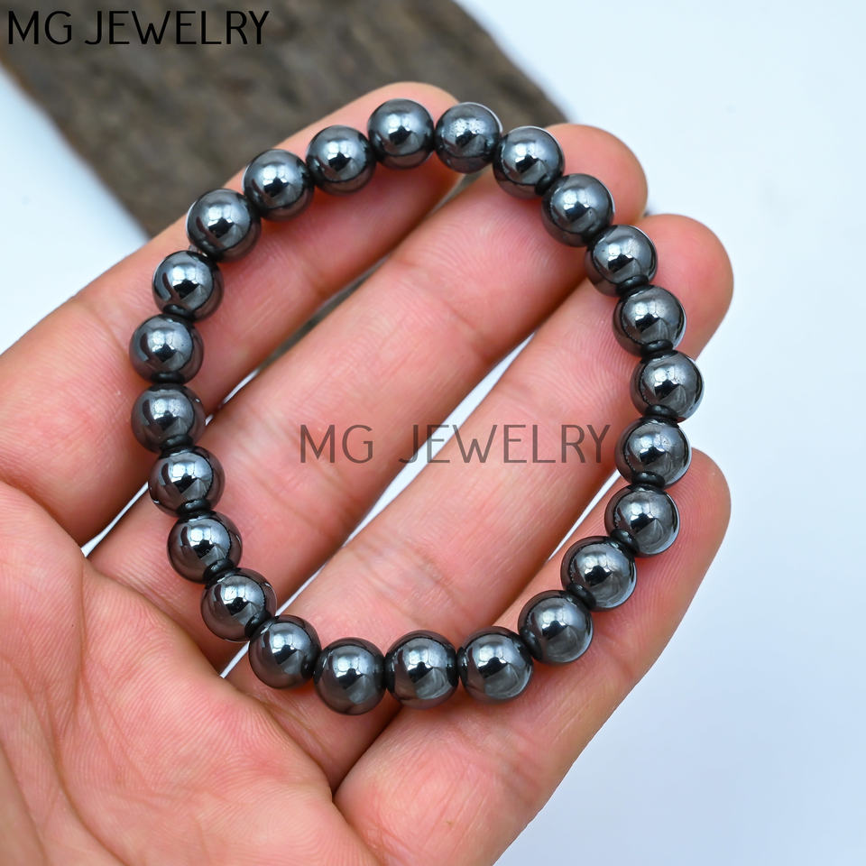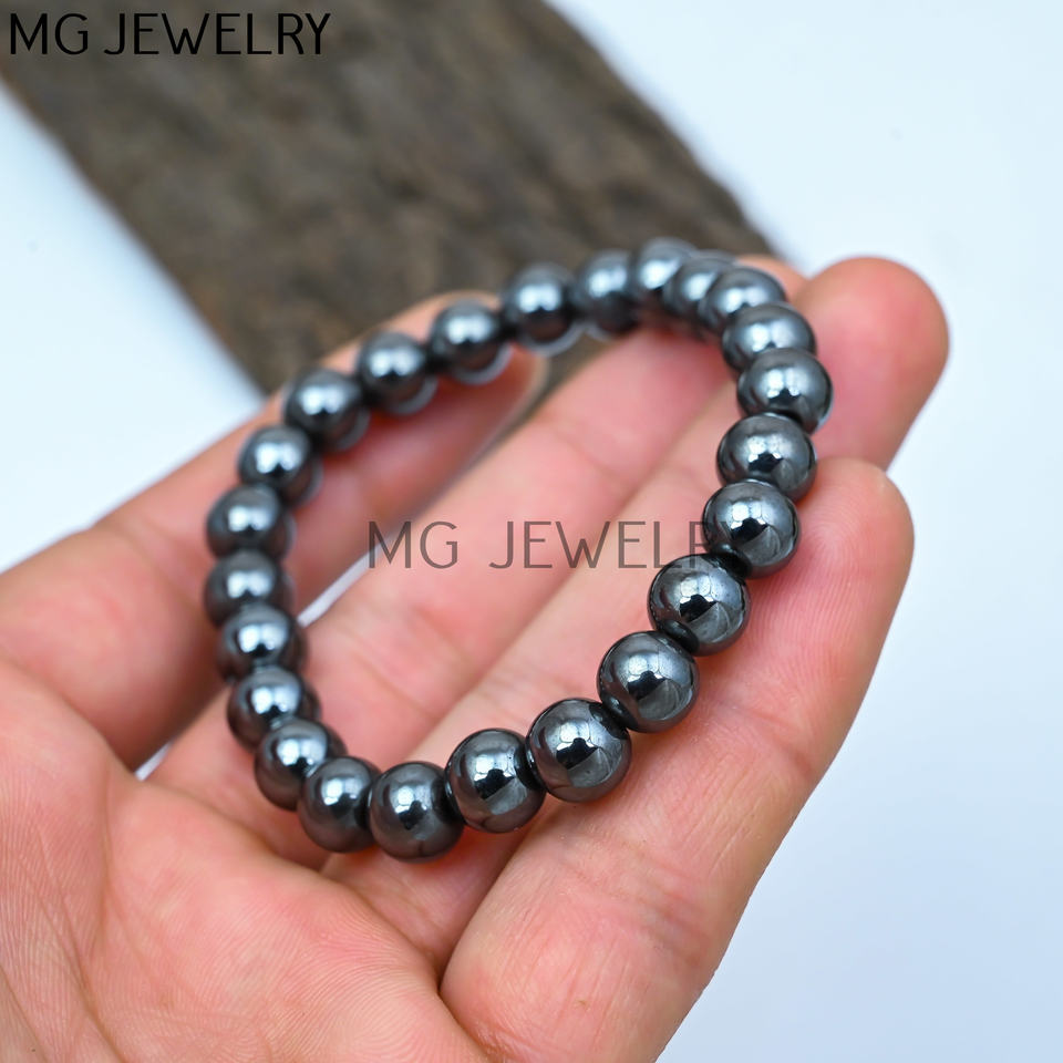 กำไลลูกปัดโลหะสีฮีมาไทต์ขนาด8มม. กำไลลูกปัดหินออกไซด์ทรงกลมขนาด8มม. กำไลข้อมือคริสตัลรักษา