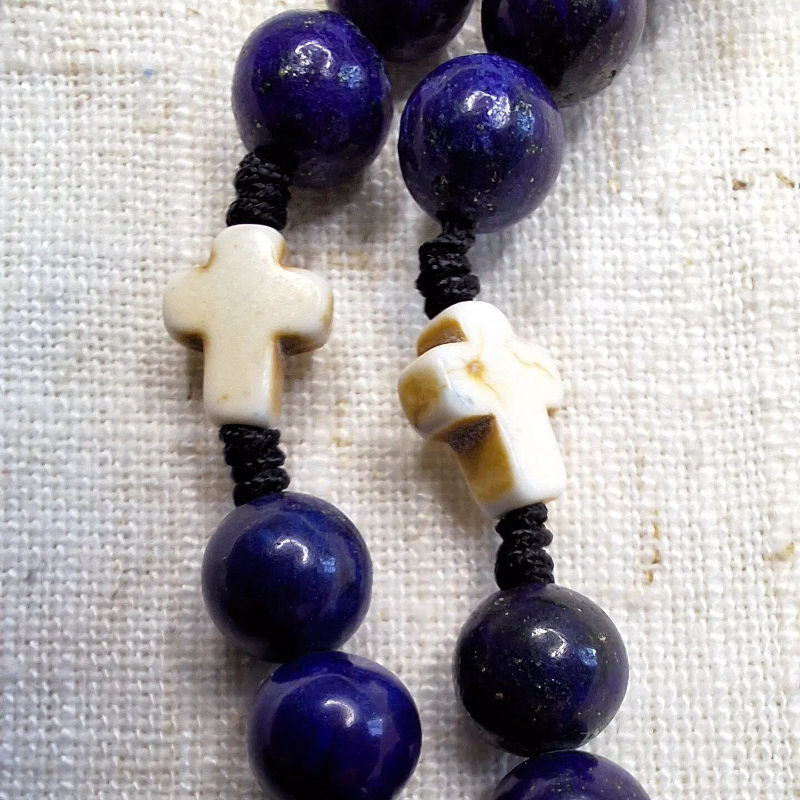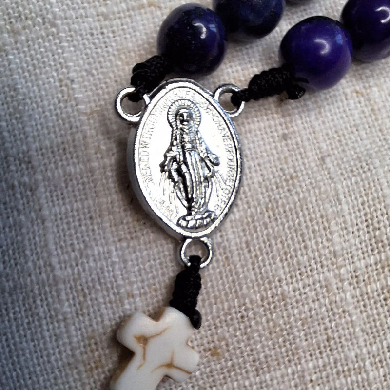 ลูกประคำหินลาพิส ลาซูลี ขนาด 8 มม. สร้อยคอหินห้าสิบเม็ด พร้อมจี้รูปพระแม่มารี สำหรับการปฏิบัติกรรมทางจิตวิญญาณ พร้อมตัวล็อคแม่เหล็ก