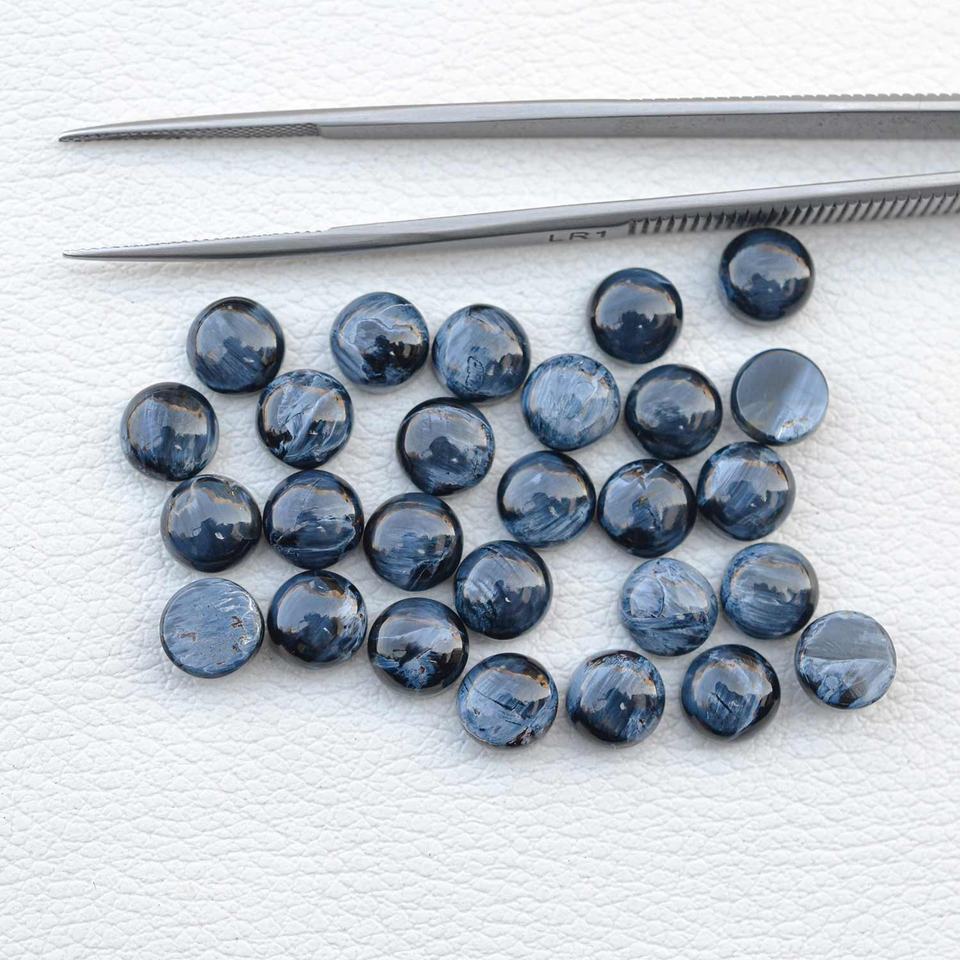 พลอยพีเทอร์ไซต์สีน้ำเงินธรรมชาติขนาด 8 มม. รูปทรงกลมแบนแบบคาโบชอง คุณภาพดีที่สุด พลอยกึ่งมีค่าแบบเม็ดเดี่ยว จากผู้ผลิตโดยตรง
