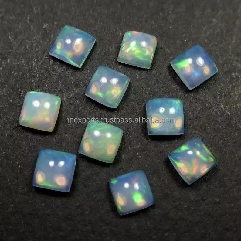 โอปอลเอธิโอเปียธรรมชาติขนาด 8 มม. รูปทรงโดมสี่เหลี่ยมแบบคาโบชอง พลอยหลวม ราคาขายส่ง โอปอลหลากสี สำหรับเครื่องประดับหรูหรา