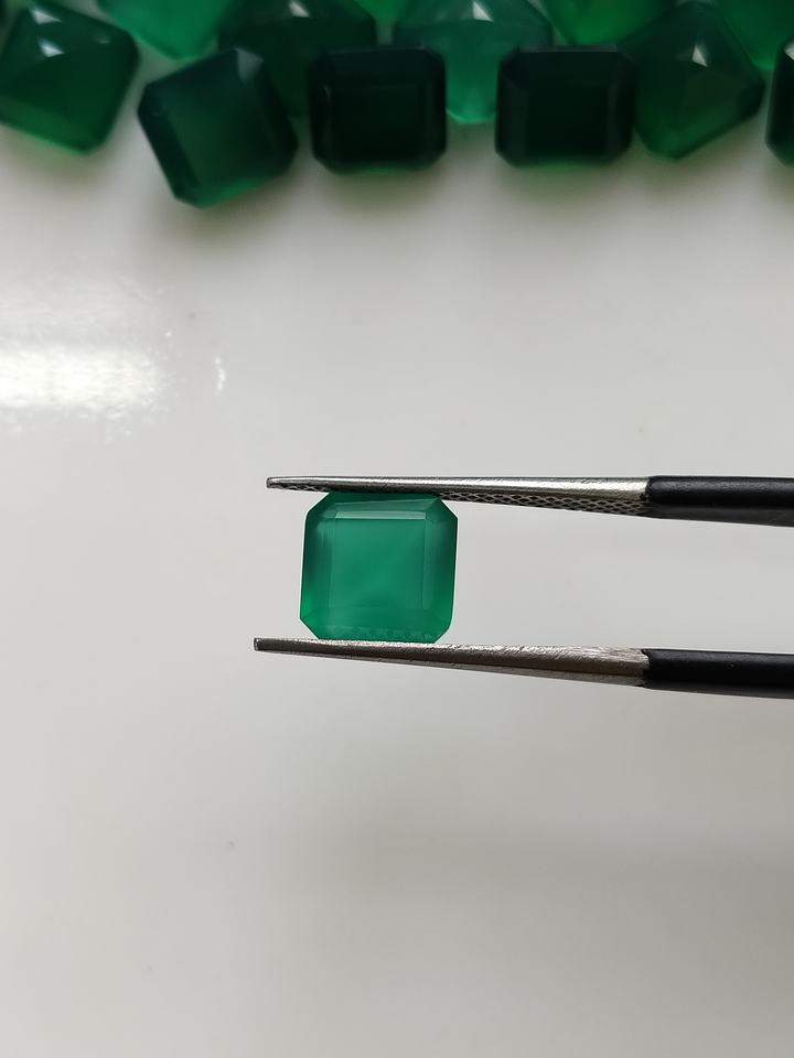 อัญมณีรูปแปดเหลี่ยม8มม. สีเขียวพลอยพลอยสังเคราะห์สำหรับทำเครื่องประดับ