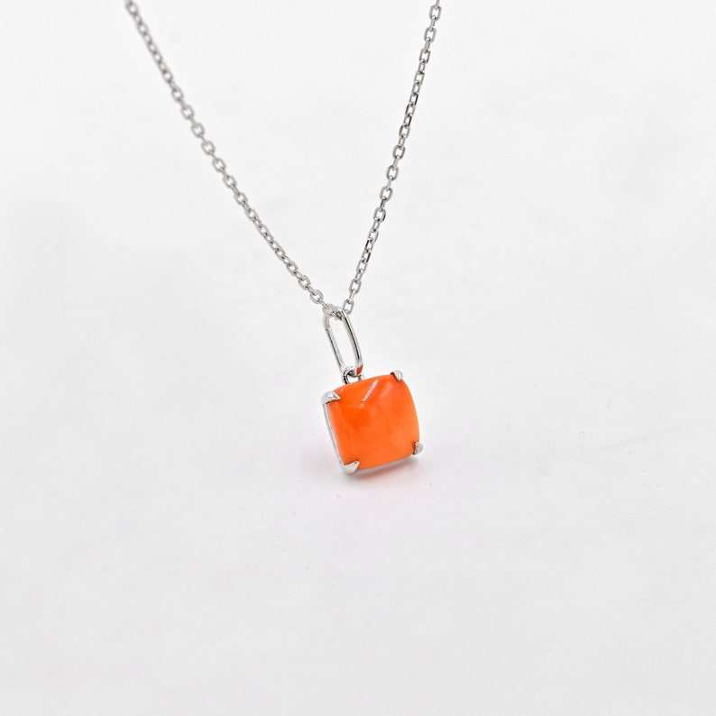 จี้ปะการังญี่ปุ่นสีชมพูธรรมชาติขนาด 8 มม. สร้อยคอปะการังทองคำขาว 14k ดีไซน์เรียบหรู ของขวัญสำหรับเธอ เครื่องประดับมินิมอล