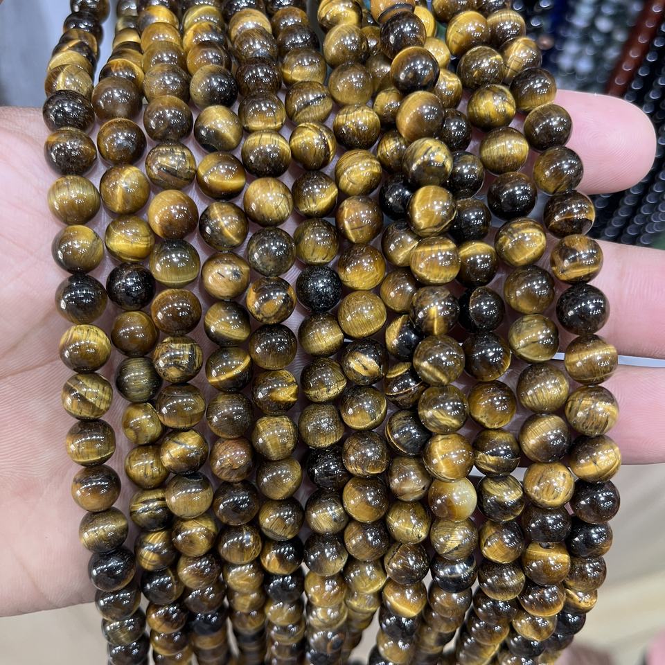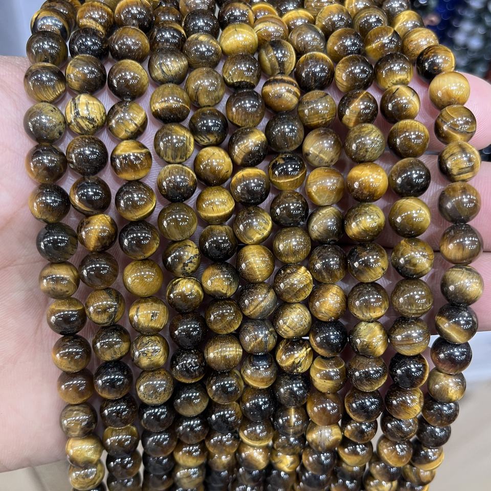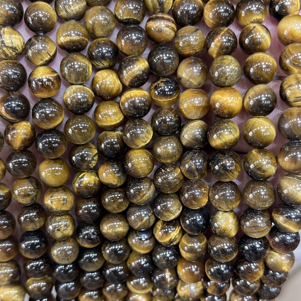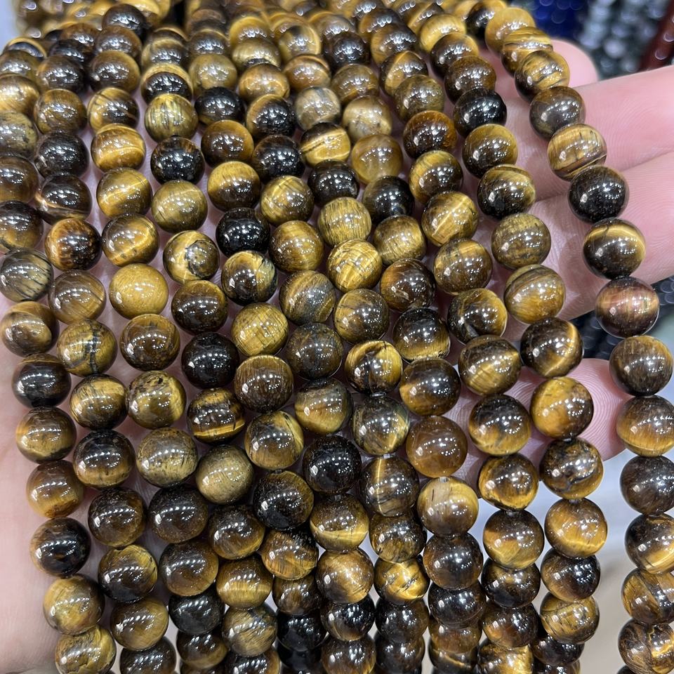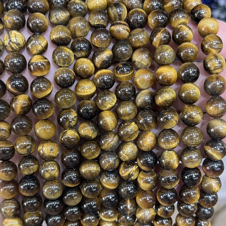 ลูกปัดหินไทเกอร์อายธรรมชาติขนาด 8 มม. แกะสลักอย่างเป็นมิตรต่อสิ่งแวดล้อม ร้อยเป็นเส้น สีน้ำตาลทองขัดเงา สำหรับทำเครื่องประดับ สร้อยข้อมือ