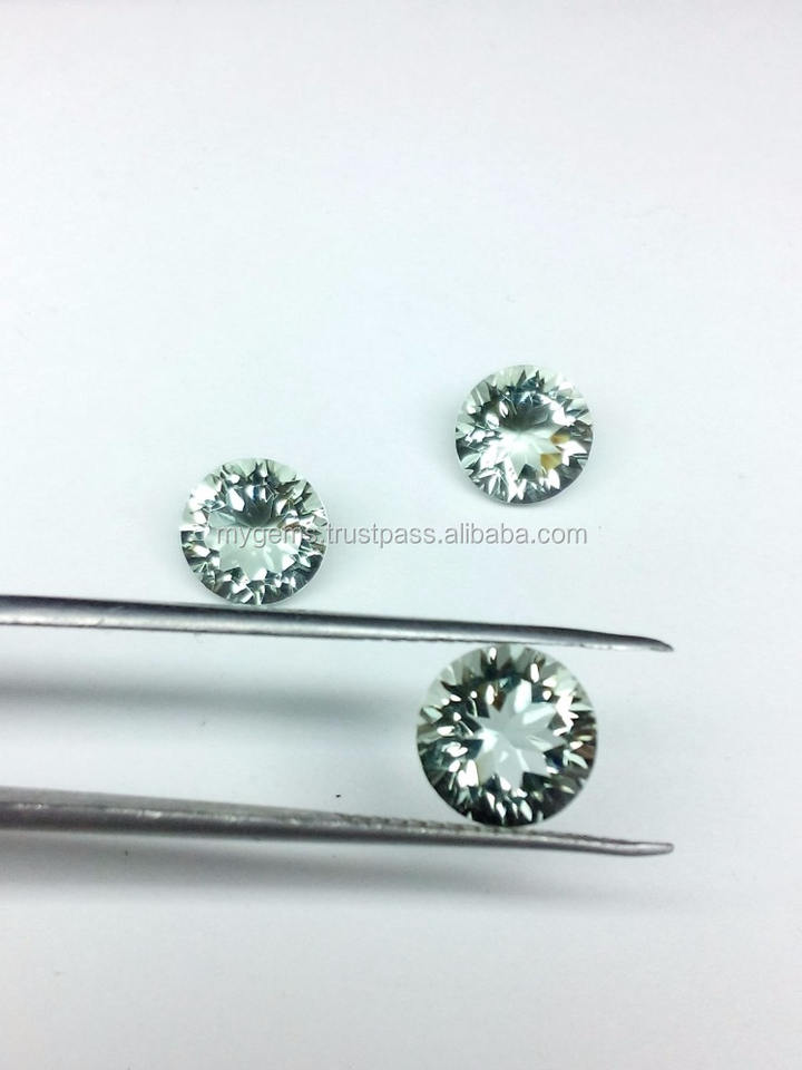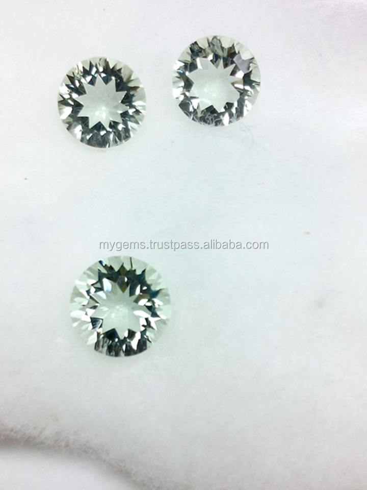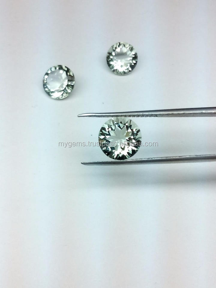 หินอเมทิสต์กลมสีเขียวแบบเว้าเกรด AAA 8มม. ผ่านการอบด้วยความร้อน