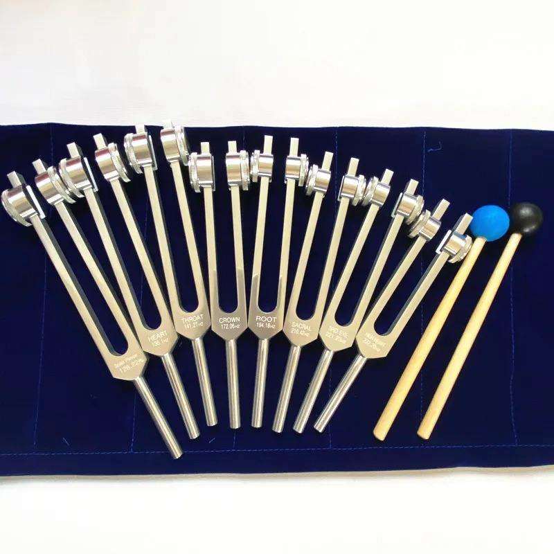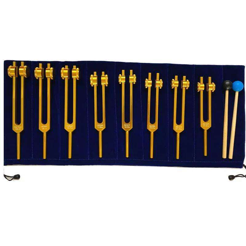 ชุดส้อมเสียงทอง 8 ชิ้น ทำจากอลูมิเนียมอัลลอยด์ สำหรับบำบัดด้วยเสียง จักระ โยคะ การทำสมาธิ และการบำบัดด้วยเสียง เครื่องมือแพทย์