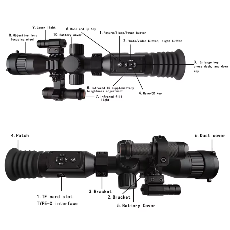 กล้องส่องอินฟาเรดสีดำสำหรับการล่าสัตว์กลางแจ้งกล้องส่องกลางคืนดิจิตอลกำลังขยาย8X สำหรับกลางคืนใช้งานตอนกลางคืน