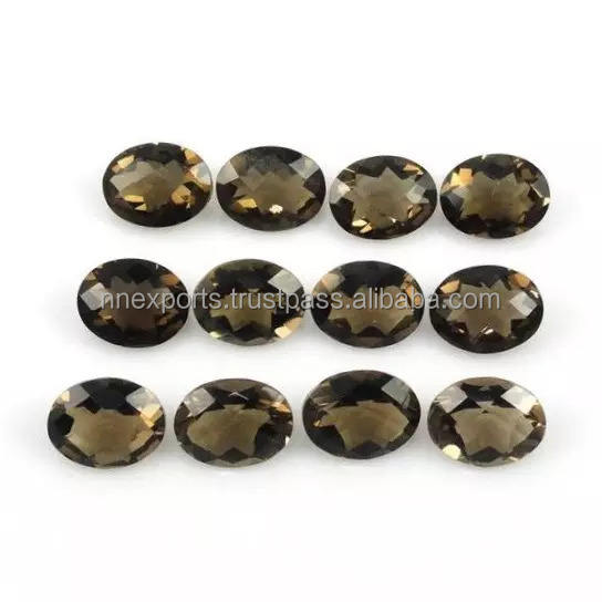 ควอตซ์สโมคกี้ธรรมชาติ เกรด AAA ขนาด 8x10 มม. รูปทรงวงรีเหลี่ยมเพชรพลอย สีน้ำตาลขัดเงาด้วยมือ พลอยหลวมจากผู้ผลิตโดยตรง