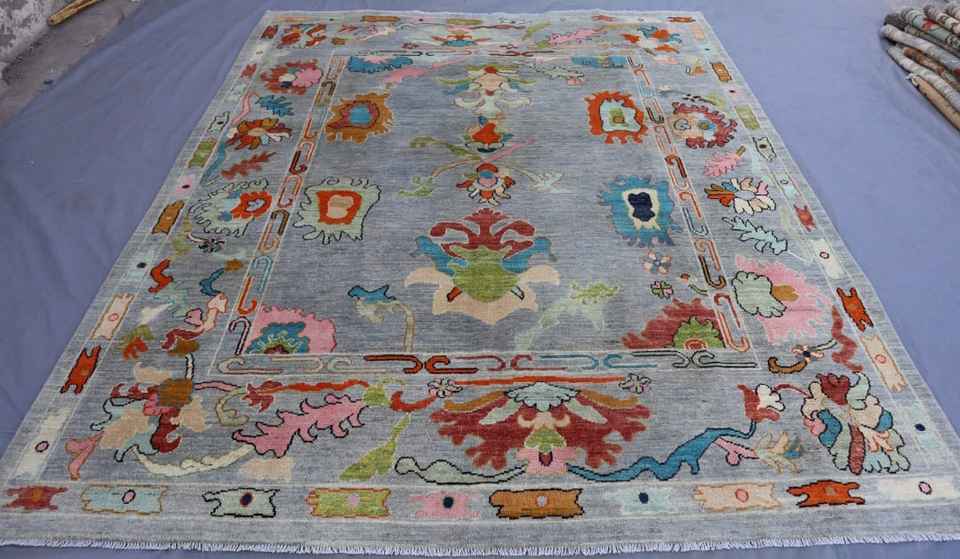 พรม oushak ทำมือสีเทา8x1O พรมขนสัตว์ทำมือปรับแต่งได้