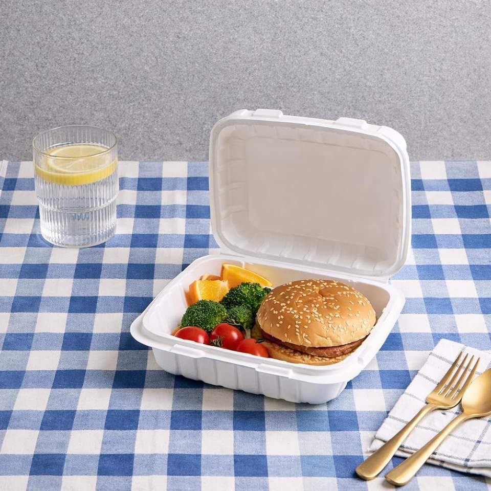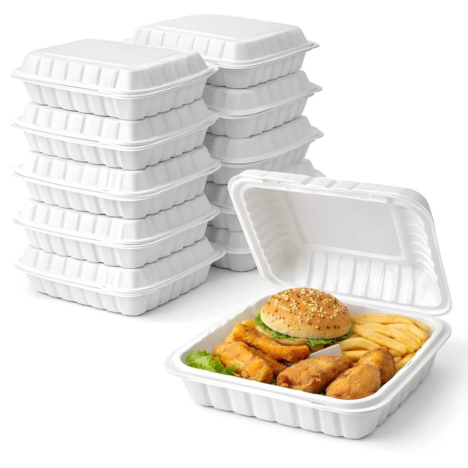 กล่องใส่อาหารแบบฝาพับ 8x8 ซม. ทำจากชานอ้อย ย่อยสลายได้ เป็นมิตรกับสิ่งแวดล้อม กันน้ำ ปราศจากสาร BPA