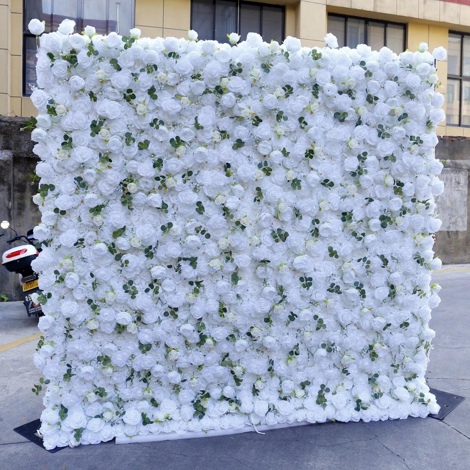 ผนังดอกไม้ประดิษฐ์จากผ้าไหมและพลาสติก ขนาด 8x8 ฟุต แบบ 3 มิติ 5 มิติ สำหรับตกแต่งงานปาร์ตี้และงานแต่งงาน