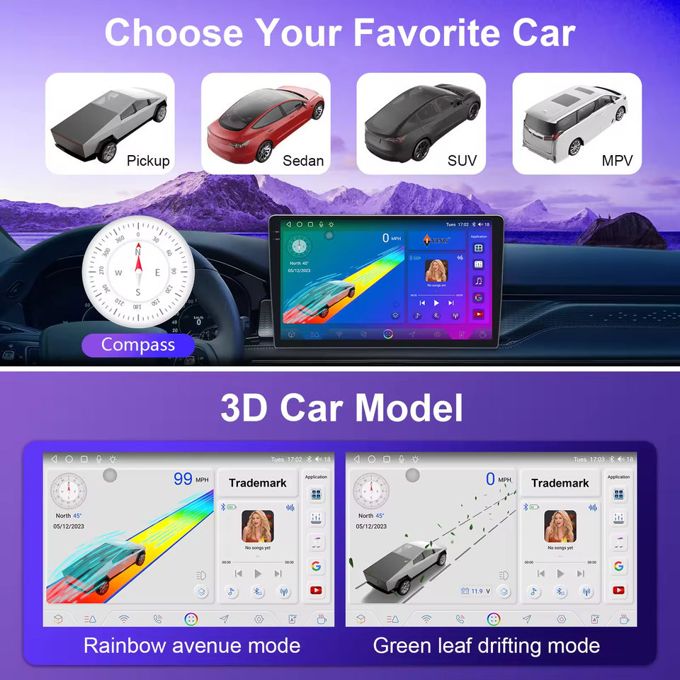 วิทยุติดรถยนต์ระบบ Android 13 ขนาด 9 10 นิ้ว รองรับ 2K สำหรับเครื่องเล่น DVD พร้อม Car Play, Bluetooth, FM, หน้าจอสัมผัส ติดตั้งบนแผงหน้าปัด