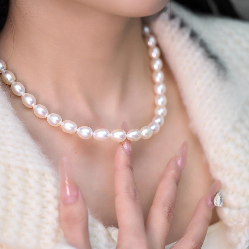 ไข่มุกน้ำจืดทรงเกือบกลม ขนาด 9-10 มม. แสงเงาสวยงาม มีตำหนิเล็กน้อย สำหรับทำสร้อยคอ แบบกึ่งสำเร็จรูป สำหรับงาน DIY