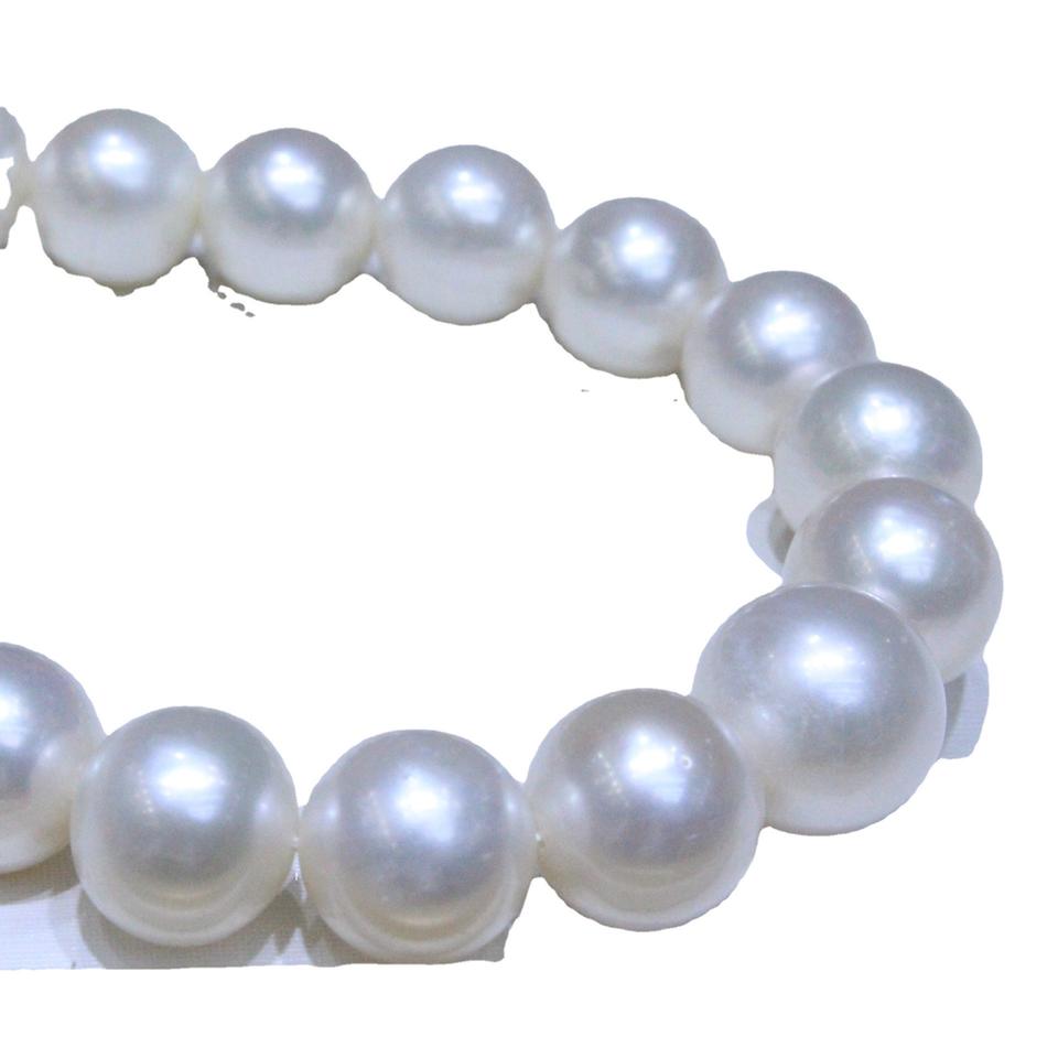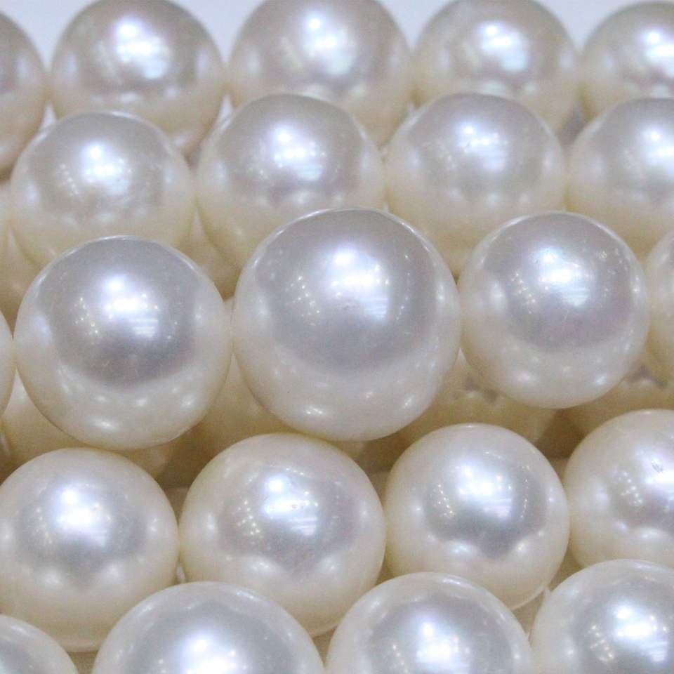 สร้อยคอมุกน้ำจืดขนาด 9-10 มม. ทรงกลมดี สีชมพูอ่อน มีตำหนิเล็กน้อย มองไม่เห็นชัดที่ส่วนบนของตัว คุณภาพดี