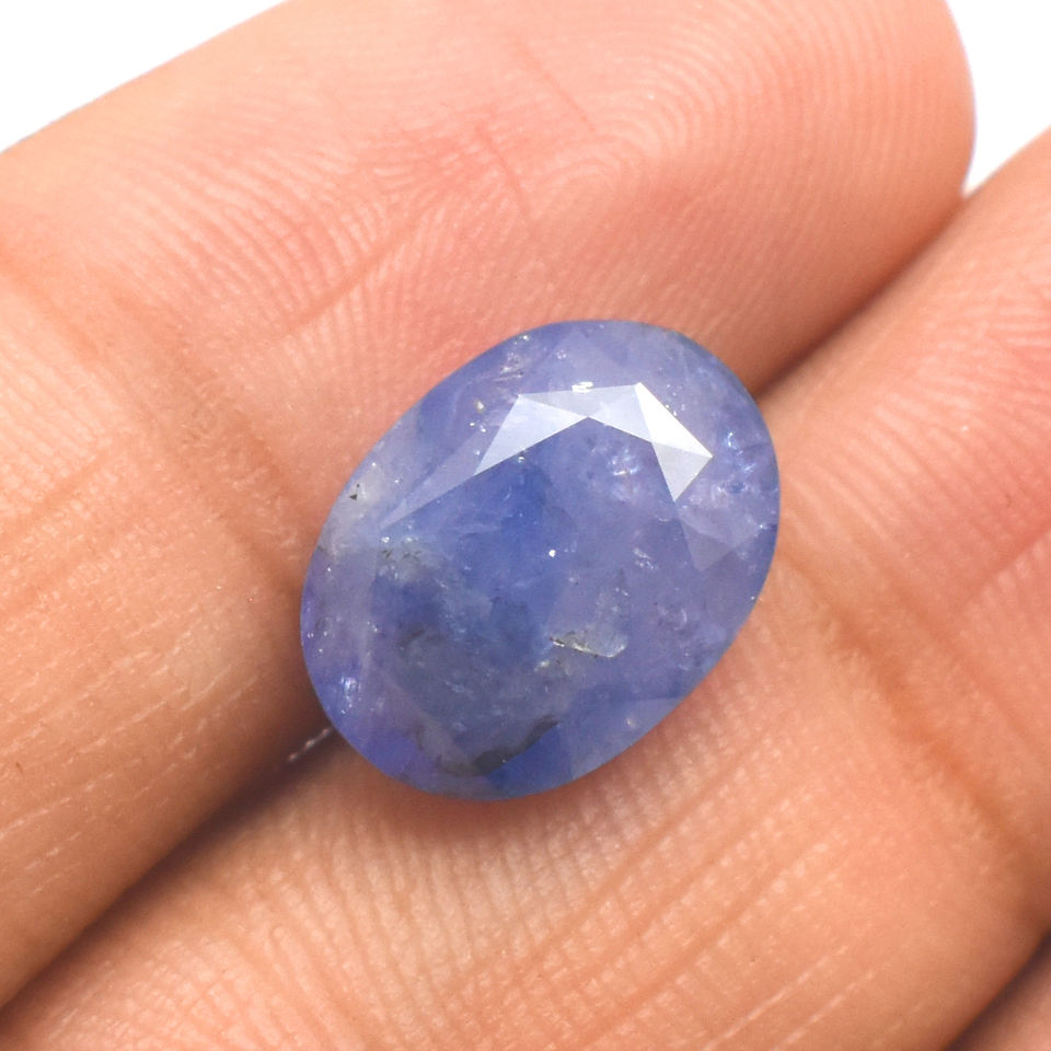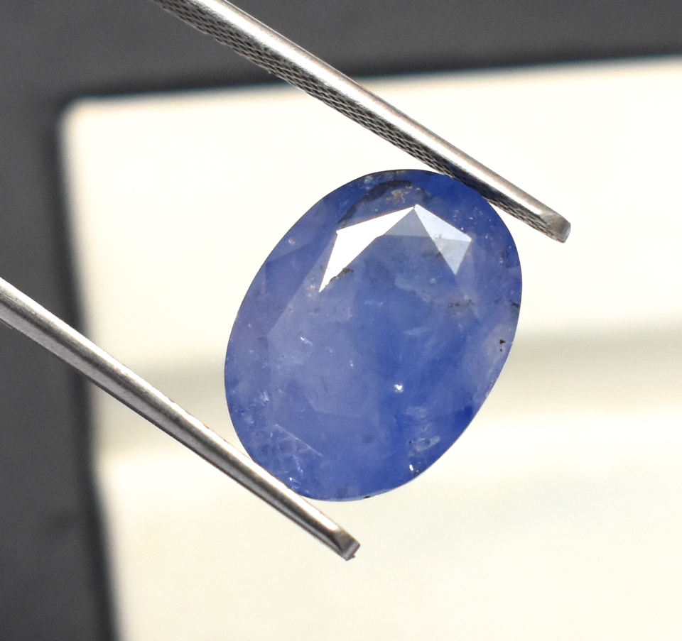 ไพลินธรรมชาติสีฟ้ารูปไข่เหลี่ยมเพชรพลอย