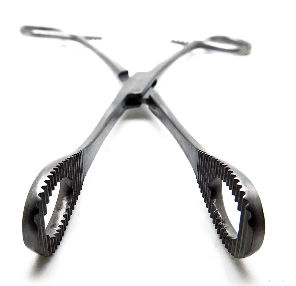 คีมจับฟองน้ำสแตนเลสแบบใช้ซ้ำได้ ขนาด 9.5 และ 10 นิ้ว พร้อมปากคีบแบบหยักวงรี สำหรับใช้ในงานผ่าตัด