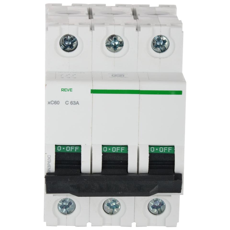 9 63-AMPERE 3-POLE C Curve MCB สีขาว REVE Polycarbonate Acti ขนาดมาตรฐานผลิตภัณฑ์ mV & HV