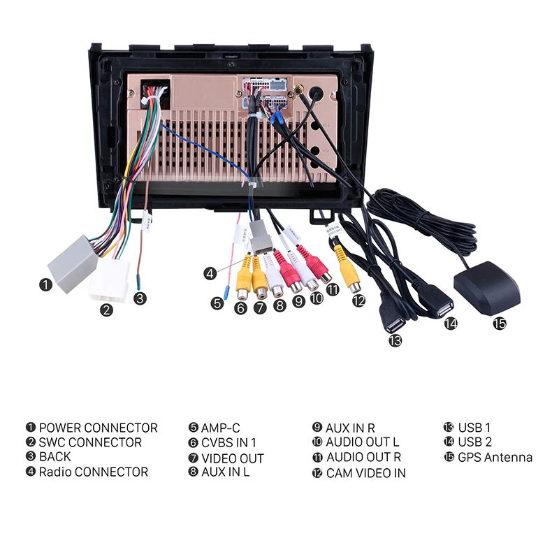 การรวมกัน:มีบลูทูธ, GPS ในตัว, เครื่องเล่นซีดี, เครื่องเล่น MP3 / MP4, เครื่องรับวิทยุ, หน้าจอสัมผัส, ทีวี, DVR, FM Transmitter, กล้องสำรอง, พอร์ตAUX, HDMI เข้า/ออก, ย้อนกลับAid