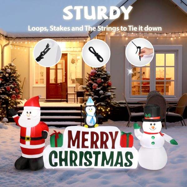 ซานตาคลอสและตุ๊กตาหิมะเป่าลมขนาด 9.8 ฟุต พร้อมไฟประดับ ตกแต่งสวนกลางแจ้งสำหรับเทศกาลวันหยุด ป้ายสุขสันต์วันคริสต์มาส