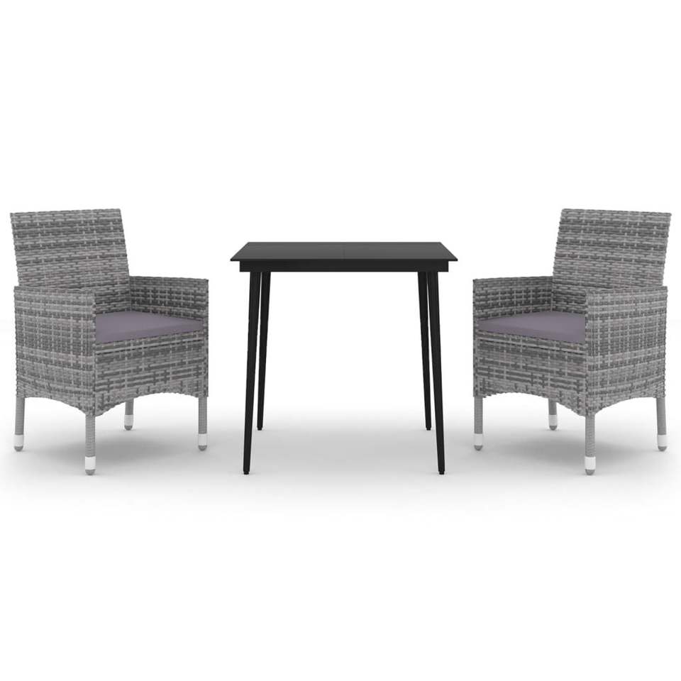 ชุดโต๊ะรับประทานอาหารทรงสี่เหลี่ยมขนาด 9.8 ตารางเมตร สีเทา ทำจากหวาย PE รองรับได้หลายที่นั่ง