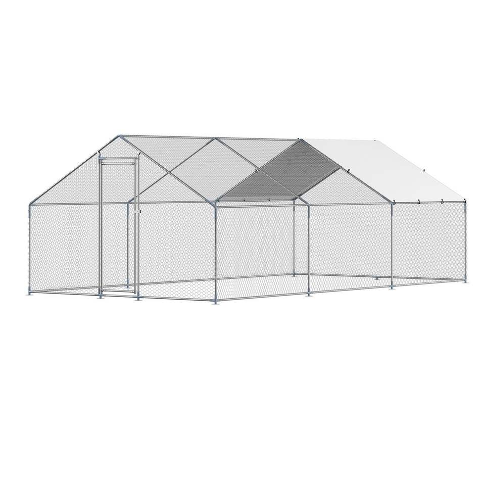 ฝาครอบเล้าไก่โลหะแบบวอล์กอินขนาด9.8x19.6x6.5ฟุตกรงยอดแหลมหลังคากรงสัตว์